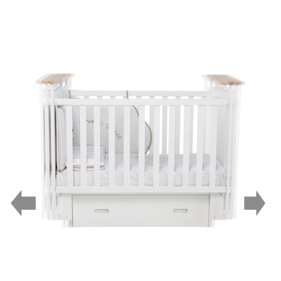 Cajón para cunas de 120 x 60 cm, con Pendulum system, un sistema que permite el balanceo de la cuna en dos sentidos de movimiento, según su sistema de montaje.