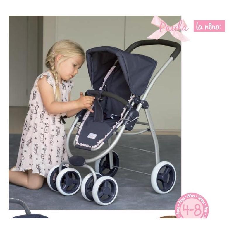 Cochecito para muñecas Paula con ruedas giratoras 2 en 1 que puede ser cuco o sillita.