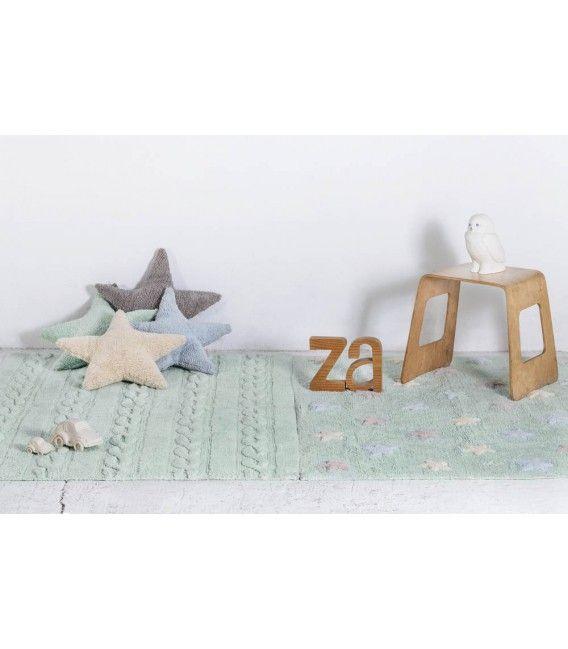 Este diseño está inspirado en las trenzas de jersey, elaboradas con volumen. Esta alfombra se lava en lavadora domésticay es 100% algodón. Tanto su color pastel, que le aporta una luz especial, como su textura son ideales para cualquier tipo de ambiente, desde salón o comedor a habitación infantil, para niña o para niño. Disponible en dos tamaños, pensando en los diferentes tamaños de la vivienda.